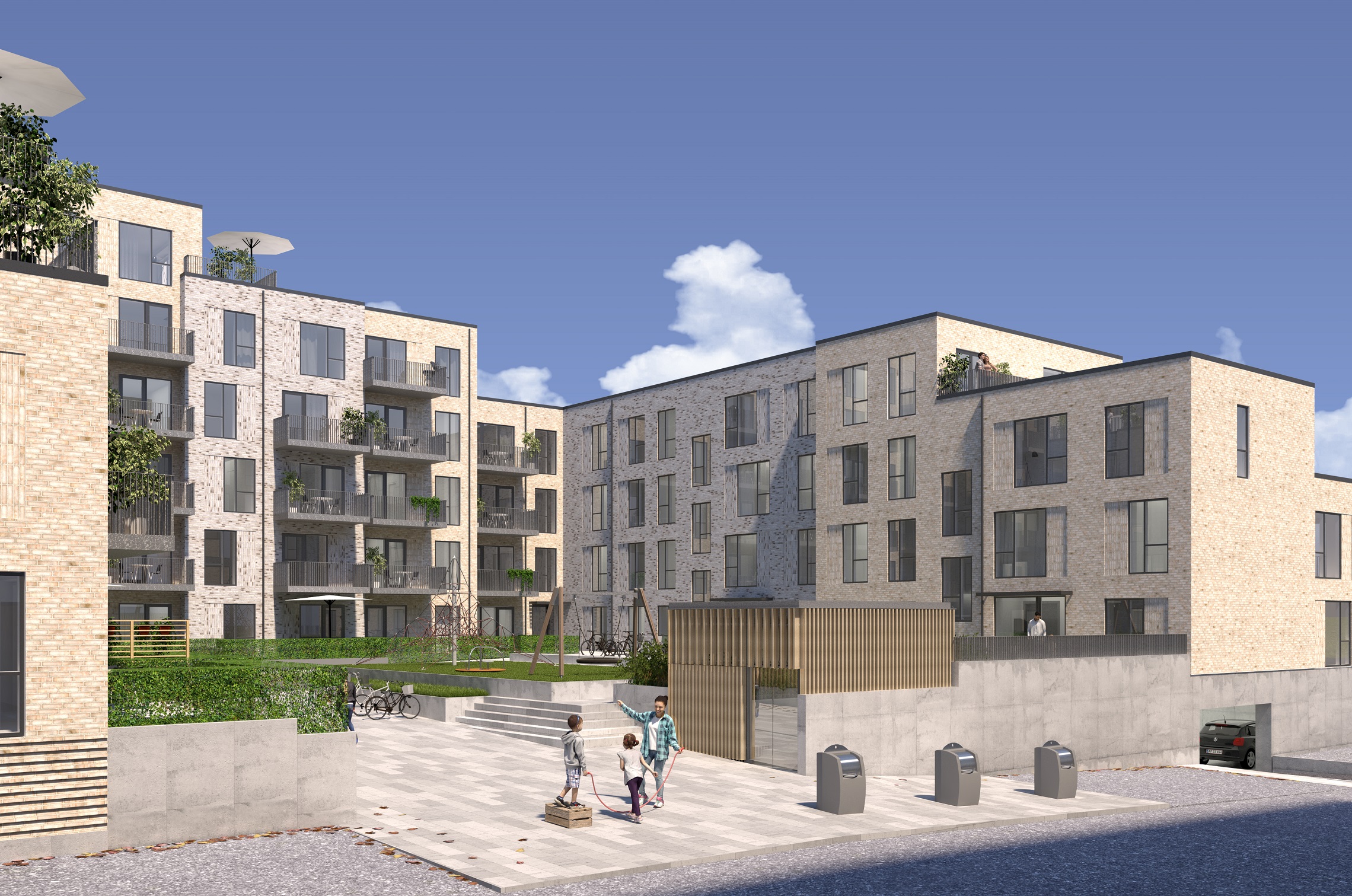 Her bliver investorerne medejere af 150 lejligheder og et erhvervslejemål på 1.200 kvm, og det hele skal stå indflytningsklart i 2023.